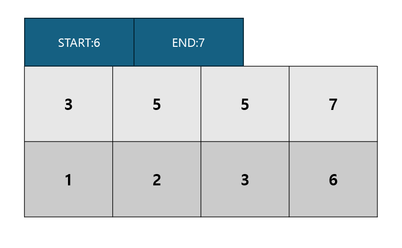 6과 7을 만났을 때는 새 선임으로 기존에 있던 선의 길이를 일단 값을 누적시켜준후 리스틀 끝나지 탐색한후 해당 start와 end값을 다시 더해준다