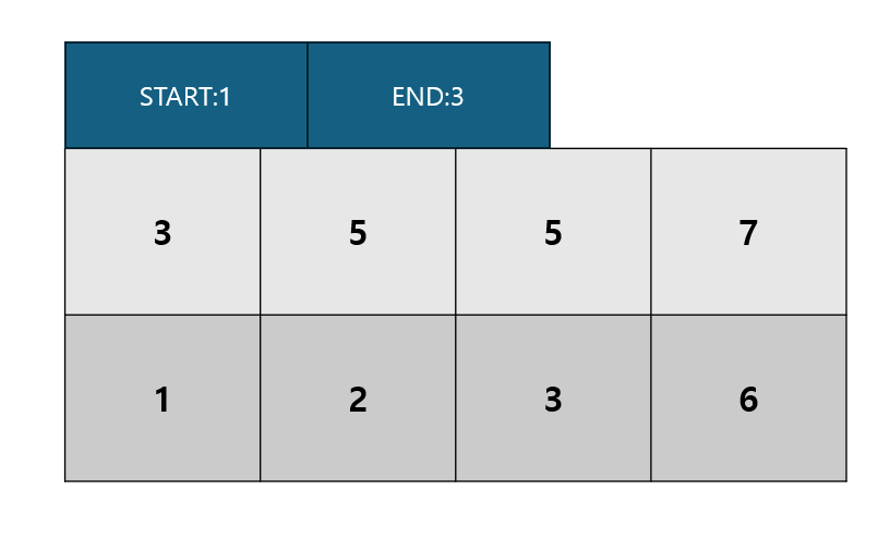 그 다음 3부터 5까지도 이 선과 끝점은 같지만 시작점이 다름으로 기존에 있던 선임으로 포함을 시키지 않는다 아직도 start는 1 end 는 5이다