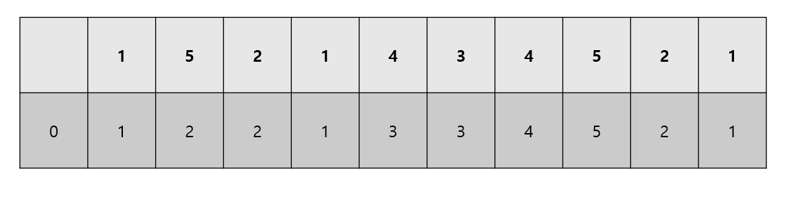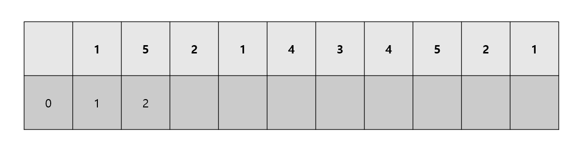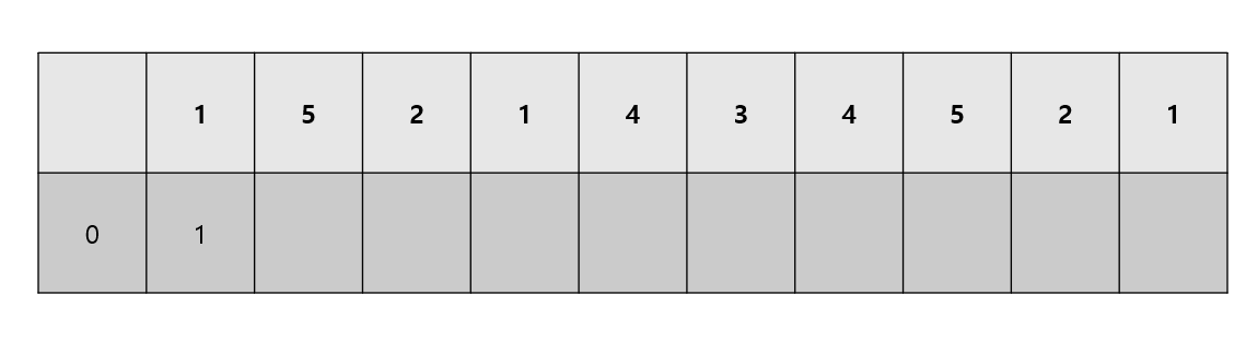 이렇게 될것이다 왼쪽 아래에 0을 넣은 이유는 1이전에는 증가하는 수열이 0이기 때문에 넣었다