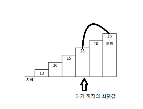 이렇게 점점 자기자신보다 작은애까지의 증가수열 + 나의 값이 최대가 되는 것을 구하는게