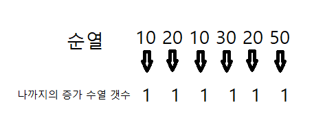 20이 10을 만나게 되면 10은 하나짜리 증가 수열이고 20은 10보다 크니