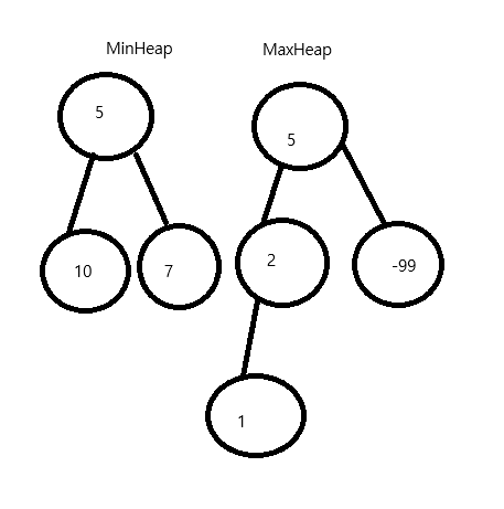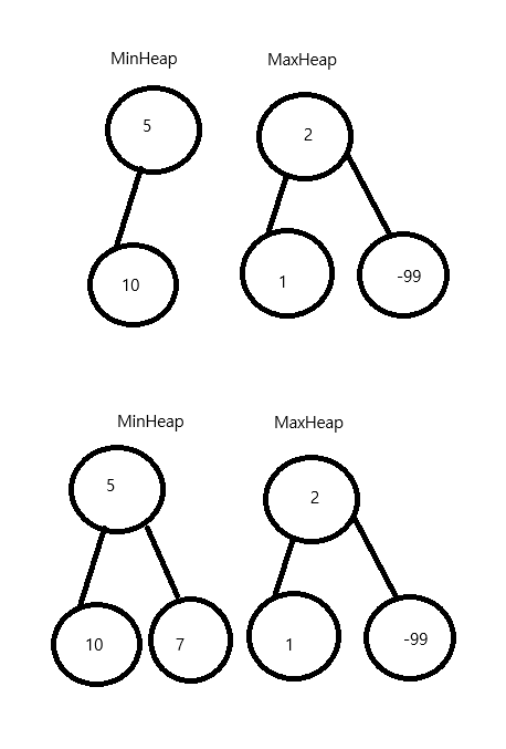 1. MaxHeap은 무조건 MinHeap보다 사이즈가 하나 커야 한다.
